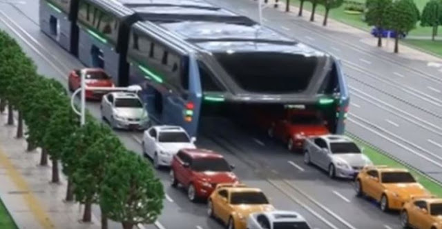 El TEB-1, siglas en inglés de Autobús Elevado de Tránsito, se mostró al gran público en un acto de exhibición donde un turismo también circuló bajo el gran vehículo para mostrar las posibilidades de la nueva invención.